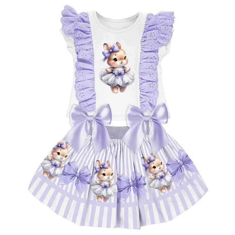 Purple Bear Ruffle Top & Skirt Set 1-8 Years